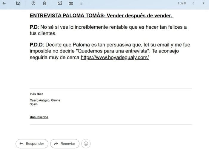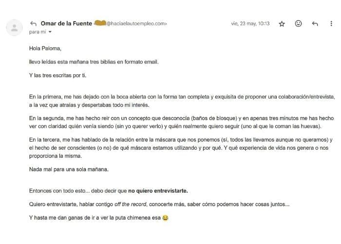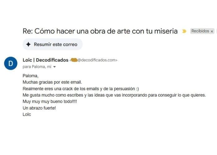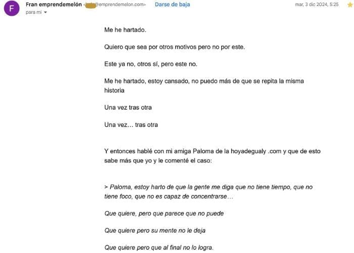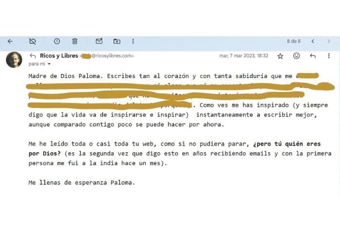 *Otros, directamente, creen que mis emails son como pequeños retiros, que les ayudan a ser menos «yos» y más «seres». Lo que reduce drásticamente la negatividad en su día a día.
